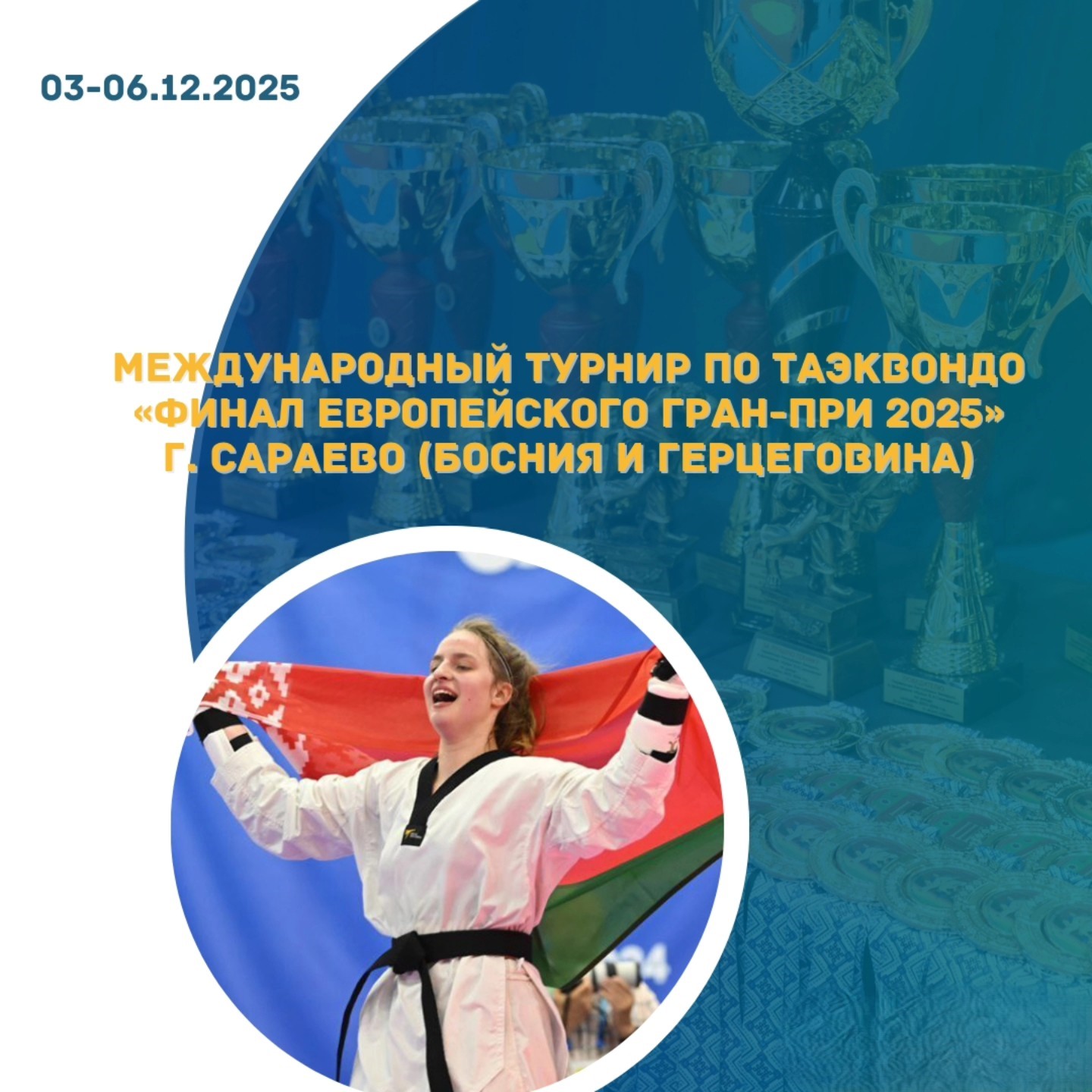 Международный турнир по таэквондо «Финал Европейского Гран-при 2025» (юниоры, юниорки) начнется в г. Сараево (Босния и Герцеговина)! Наш состав на этот турнир:-45 кг Никита Белавый+68 кг Полина Михальчук Соревнования пройдет до 6 декабря!