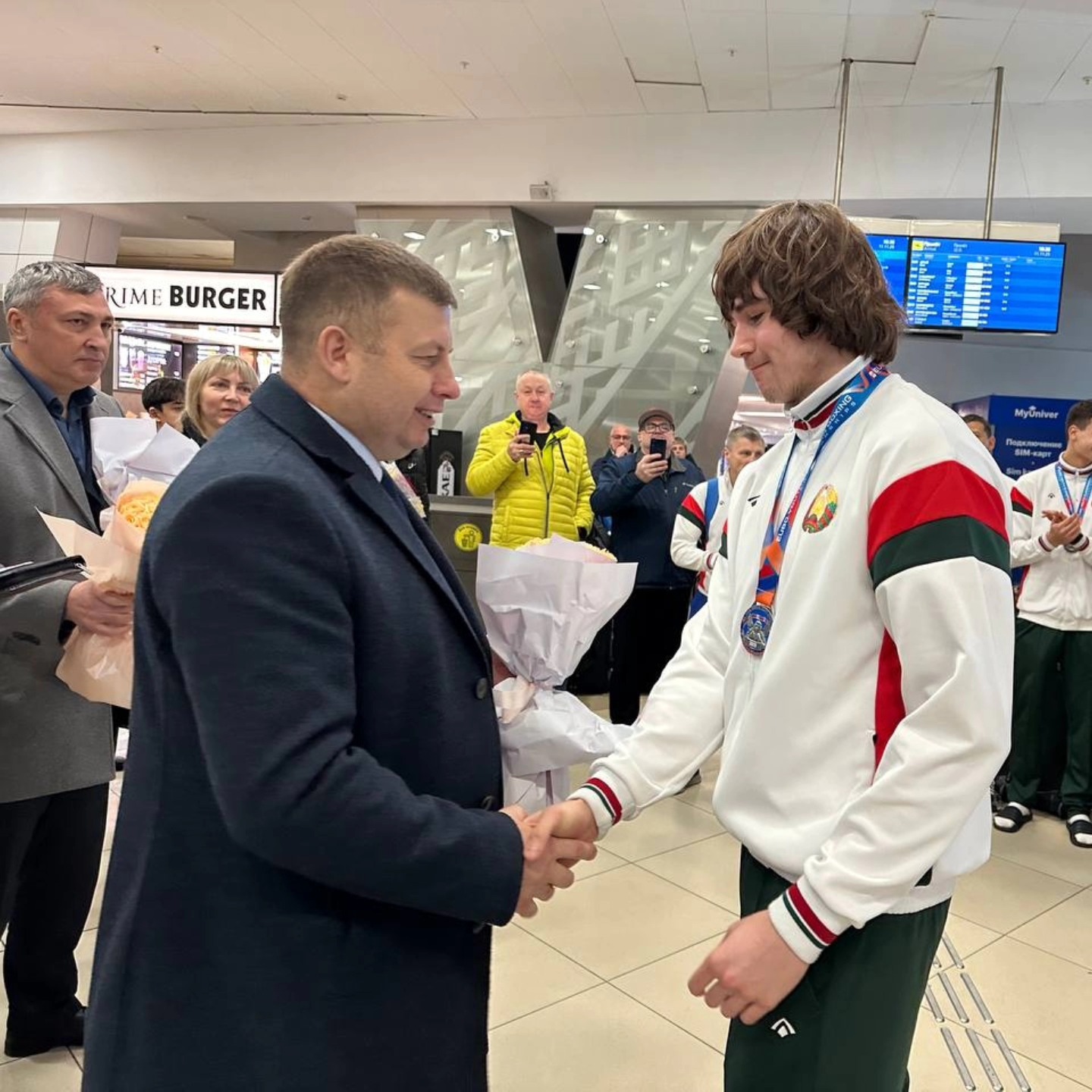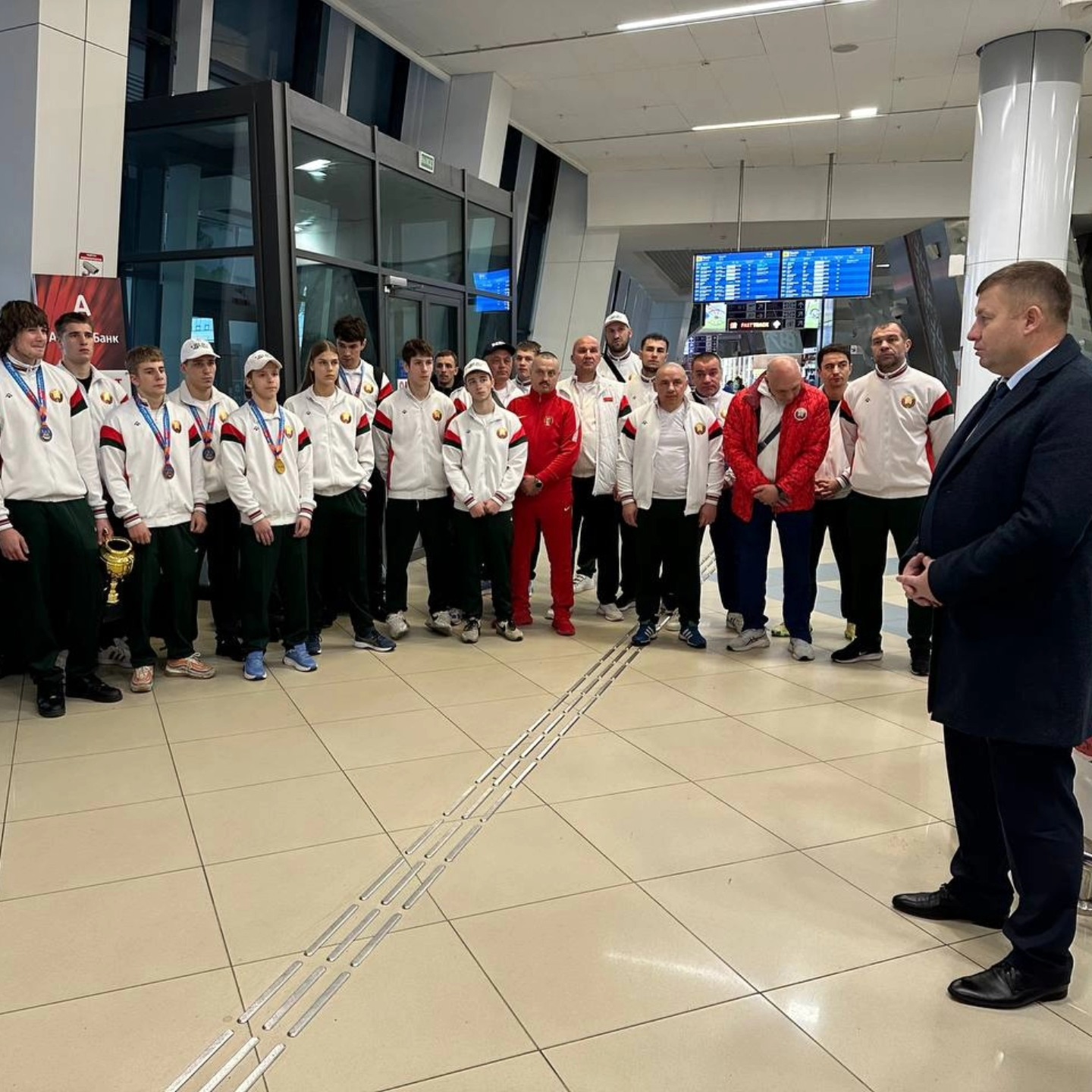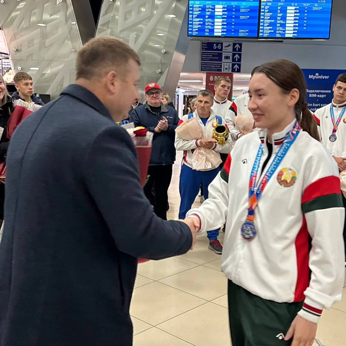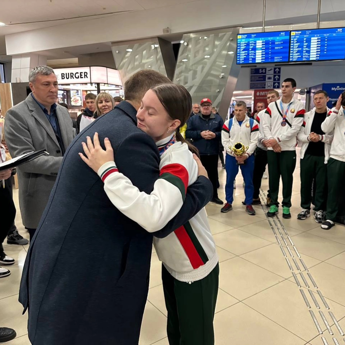 Сегодня в национальном аэропорте «Минск» руководство государственного учреждения «РЦОП «Стайки» во главе с генеральным директором Хмельковым Сергеем Васильевичем совместно с руководством Национальной команды Республики Беларусь по боксу и руководством ОО «БФБ» торжественно встретили национальную и сборную команды Республики Беларусь по боксу с чемпионата Европы среди молодежи до 18 и молодежи до 23 лет, который проходил в период с 1 по 10 ноября 2025 года в г.Ереван (Республика Армения).