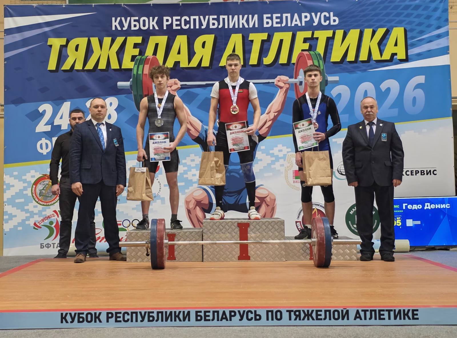 1 место Гедо Денис (Гродненская обл.) сумма двоеборья 205 кг, тренеры: Стрель В.А., Русанов А.В.